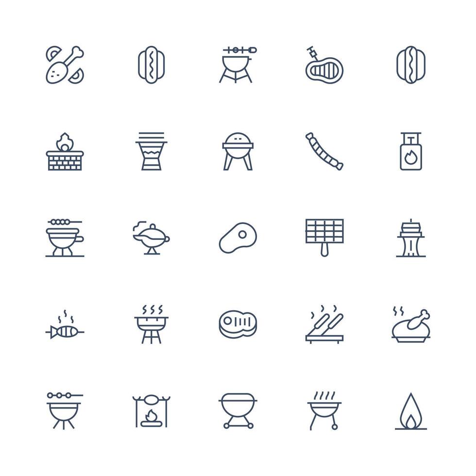 Barbecue Icon Set with 25 Medium Stroke Outline Graphics UI-Ready Icon Collection vector