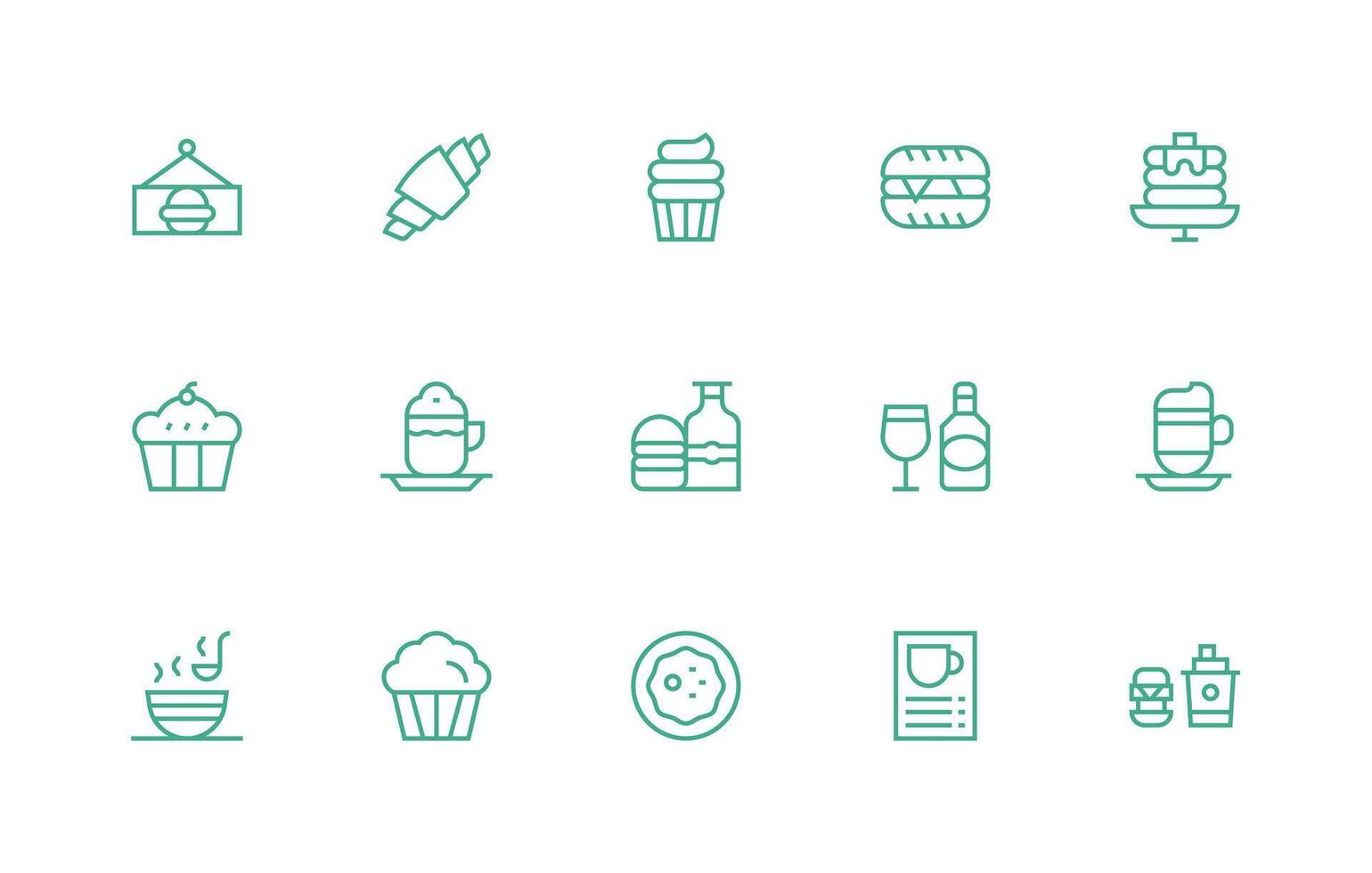 15 Cafe Menu Icons in Regular Line Aesthetic Scalable Icons for Cross-Platform Interfaces vector