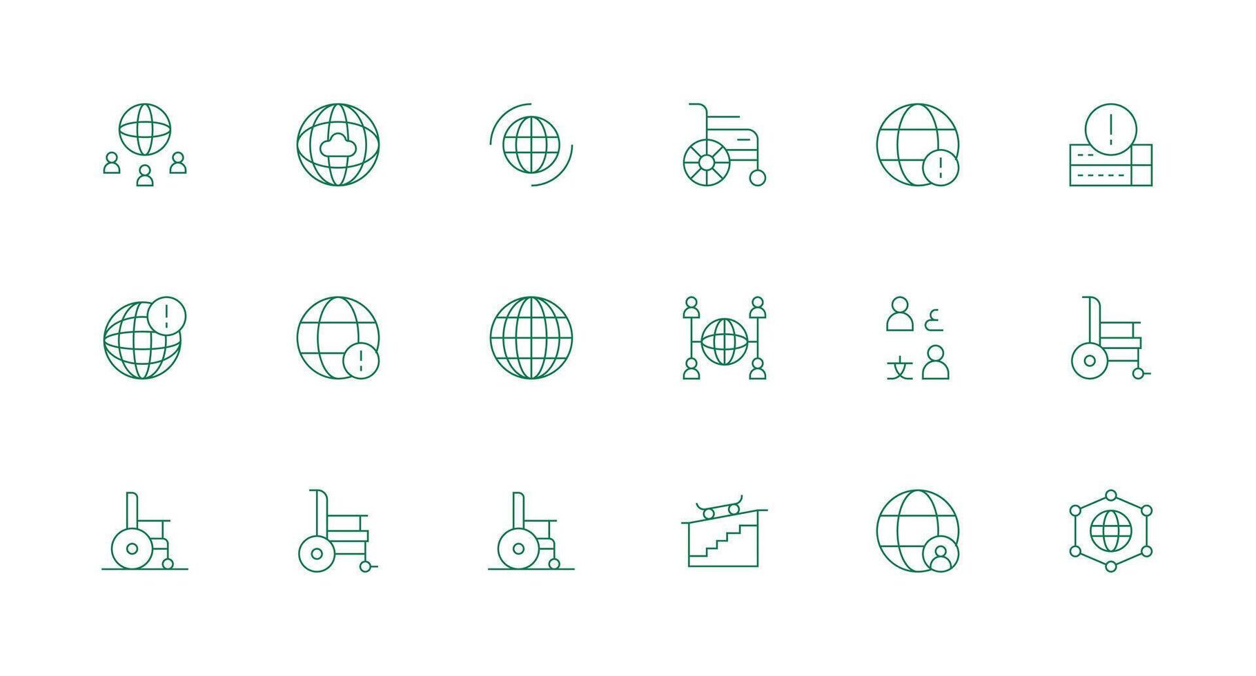 Accessibility Design Icons featuring 18 in Minimal Line Style Neat Icon Set vector