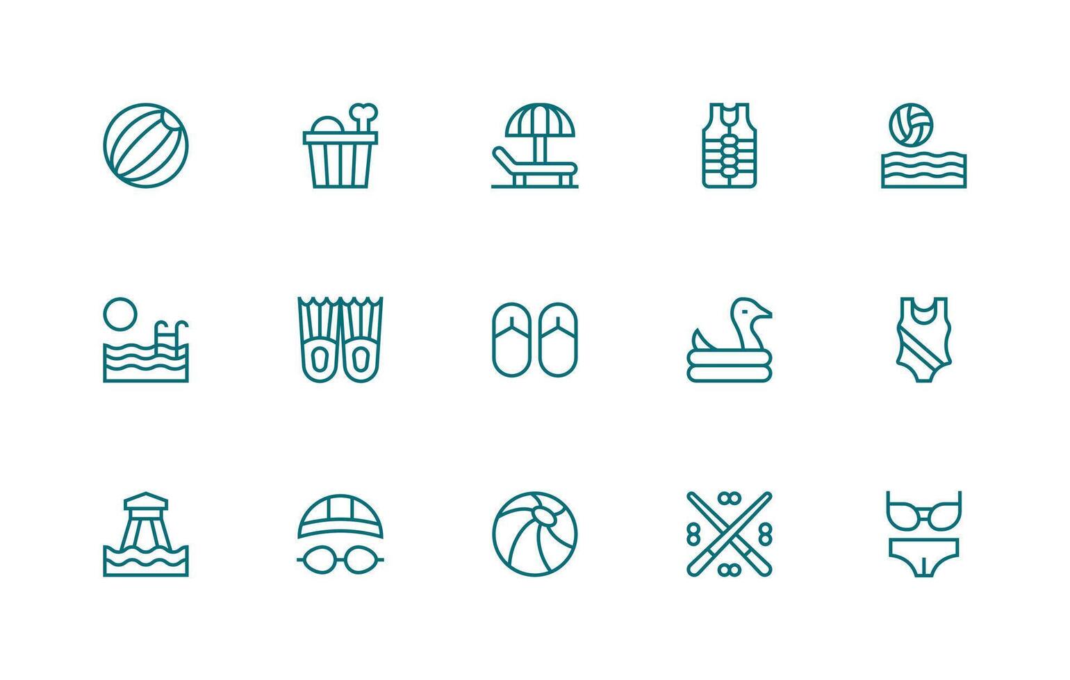 Regular Line Icons from Pool Set with 15 Vectors Organized Glyph Icons for Fast Design
