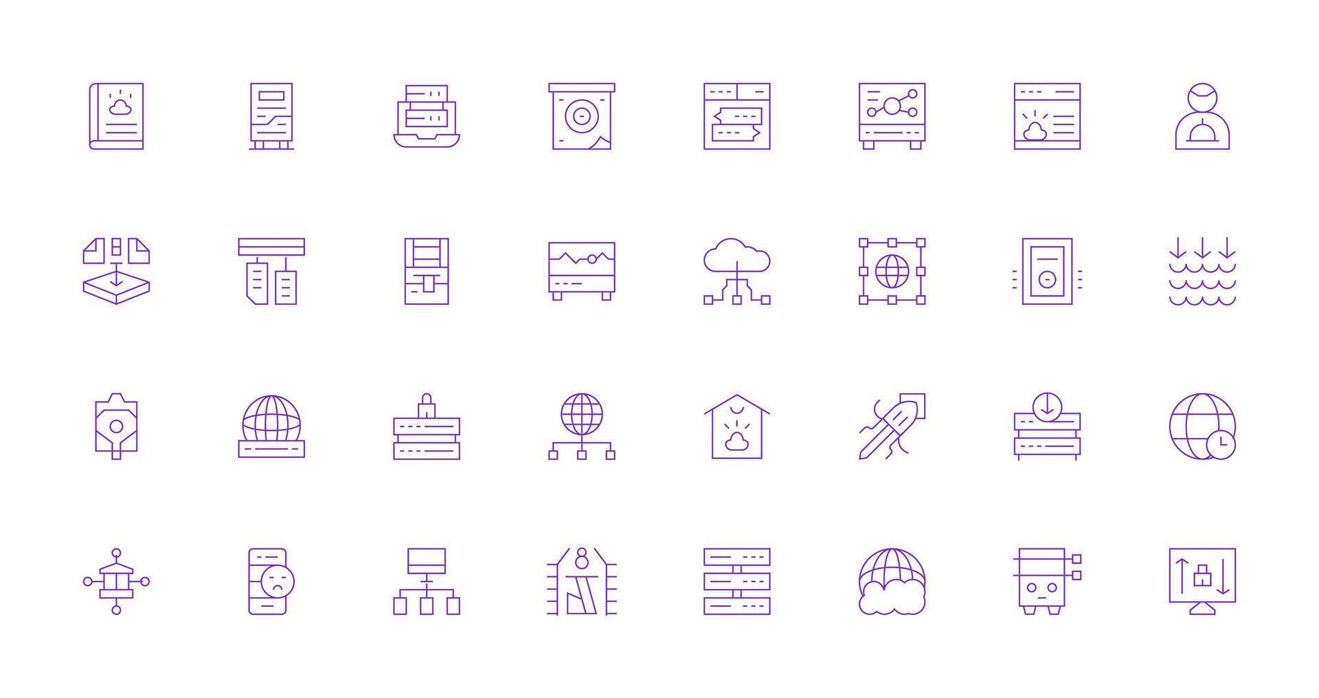32 Thin Line Icons for Server Graphics Neat Icon Set vector