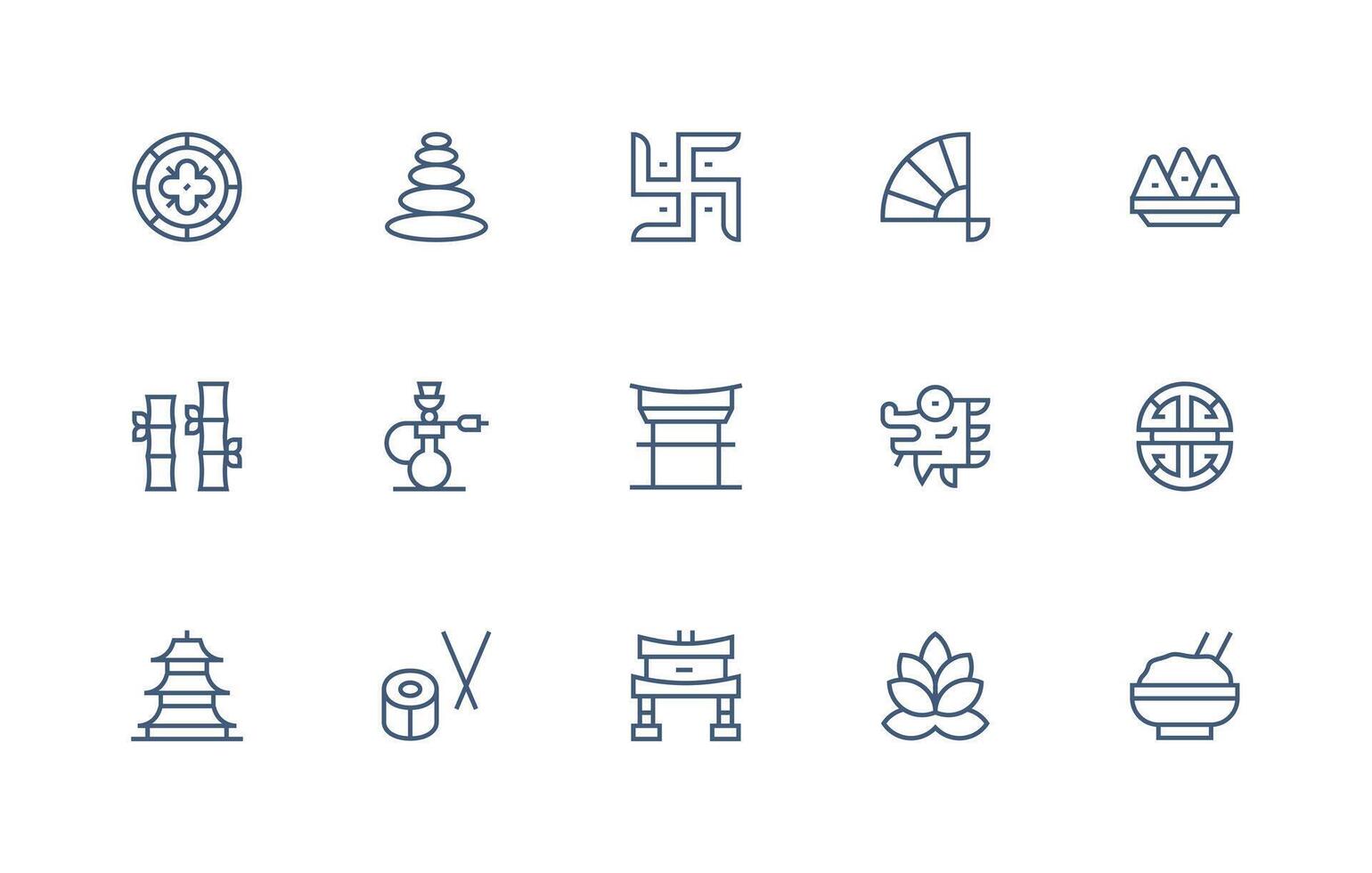 15 Icons for Oriental in Regular Line Format Interface Icon Collection for Daily Projects vector