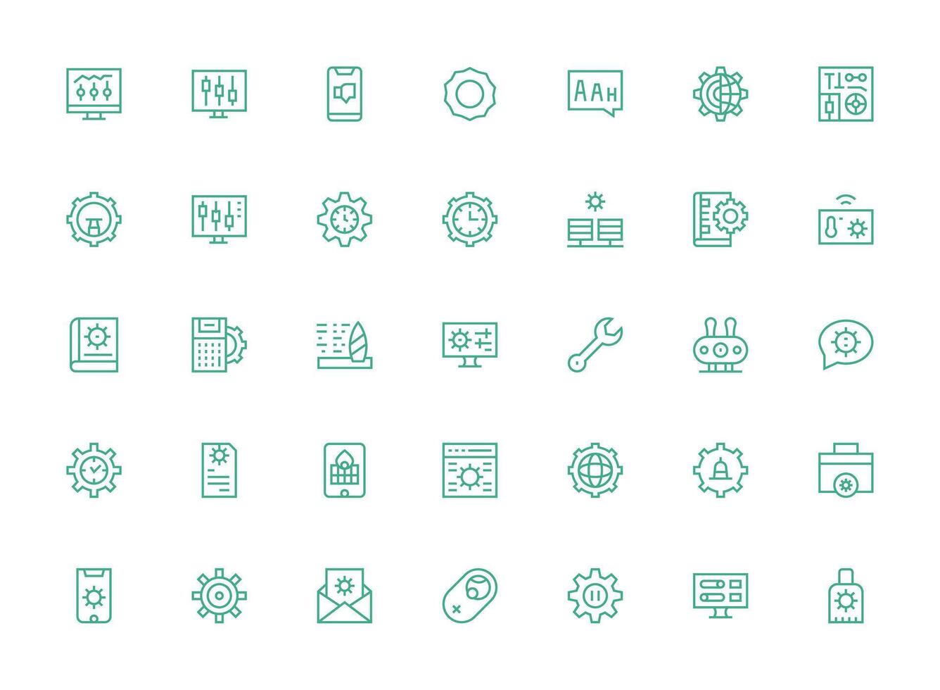 35 Icons for Settings in Regular Clean Line Format Well-Structured Icons for Creative Use vector