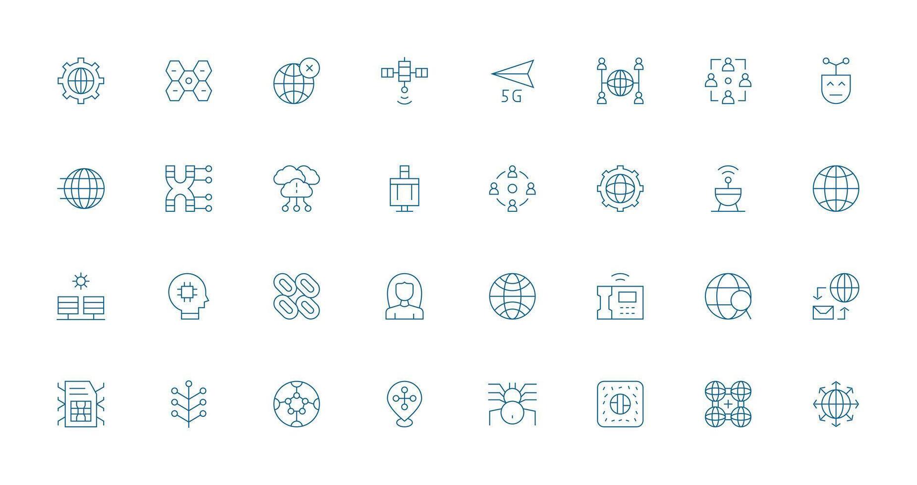 Network Icon Set with 32 Thin Line Graphics Professional Icon Pack for Development Work vector