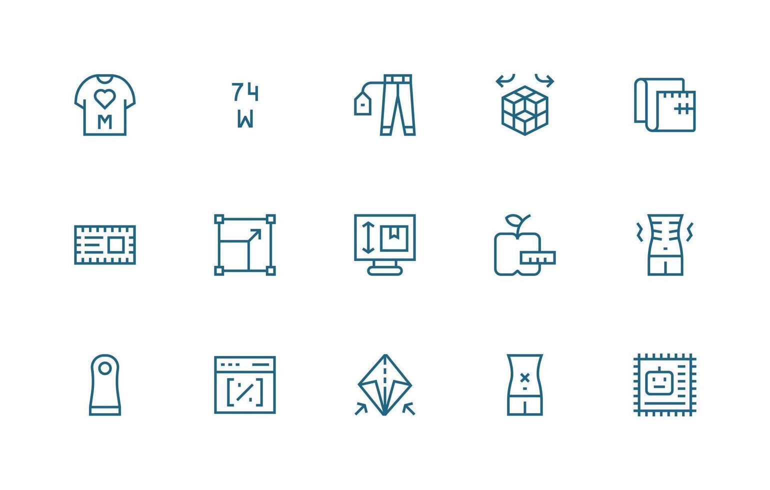 Size Icon Set with 15 Regular Line Graphics Minimal Icon Set for Interface Projects vector
