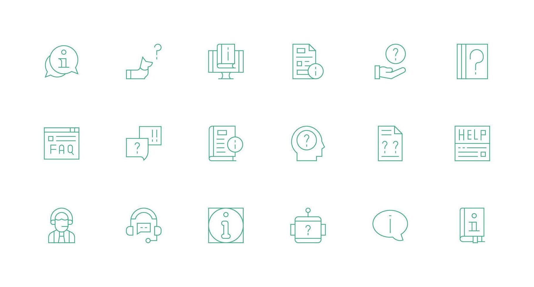 Minimal Line Style Faq Icons with 18 Vectors Professional Icon Pack for Development Work