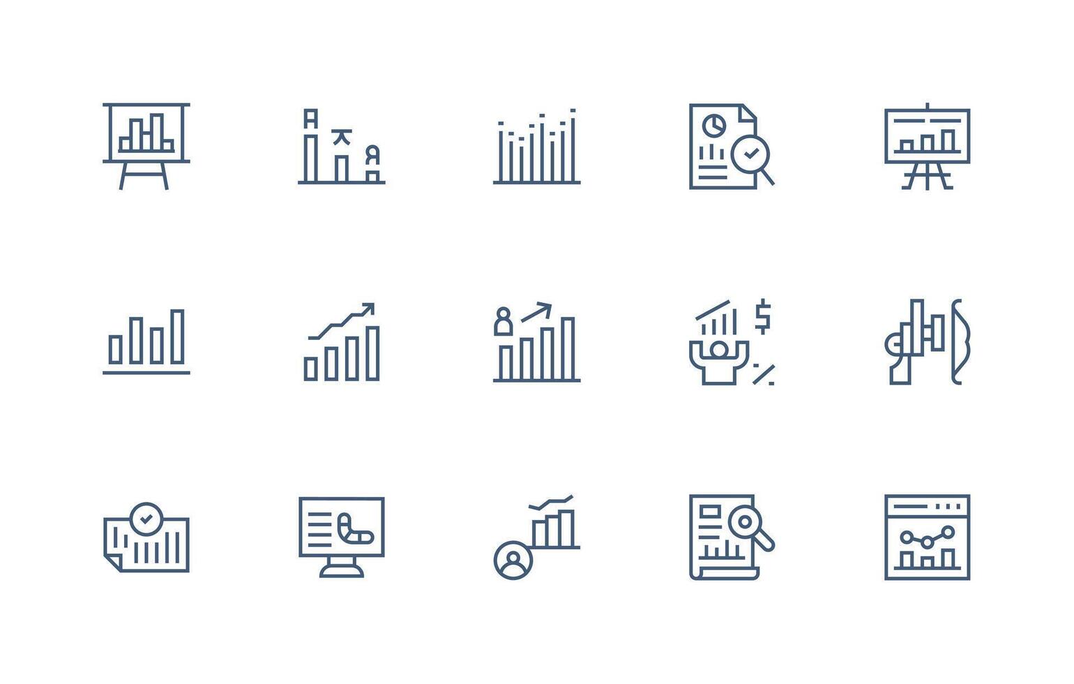 Bar Chart Visual Pack containing 15 Regular Line Icons UI-Ready Icon Collection vector