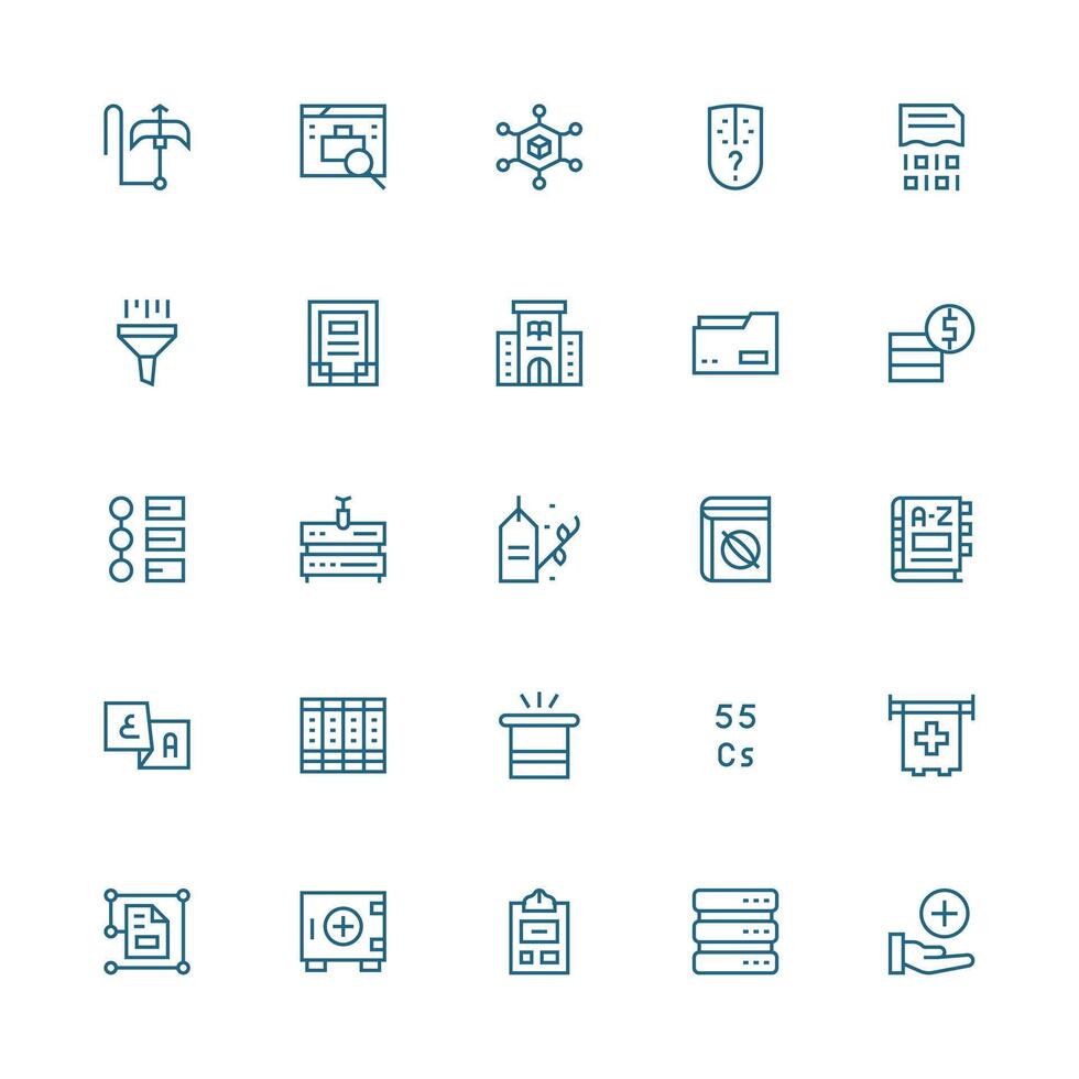 25 Medium Stroke Outline Style Icons from Database Collection Flexible Icon System for Web Interfaces vector