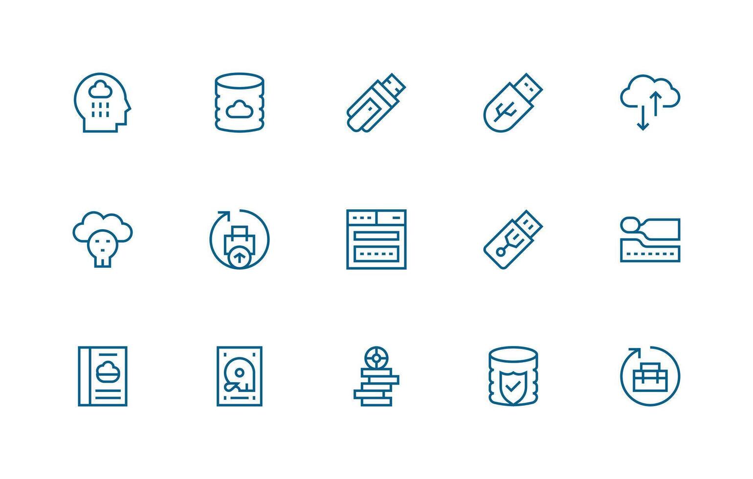 Regular Line Style Data Backup Icons with 15 Vectors High-Resolution Icons for Any Platform