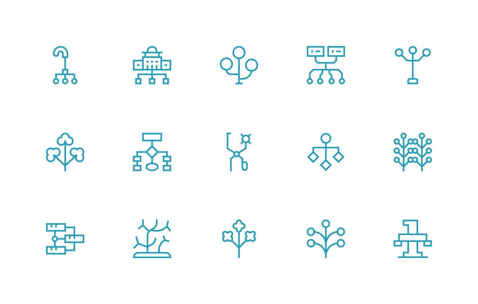Branching Icon Set with 15 Regular Line Graphics Compact Icon Set vector