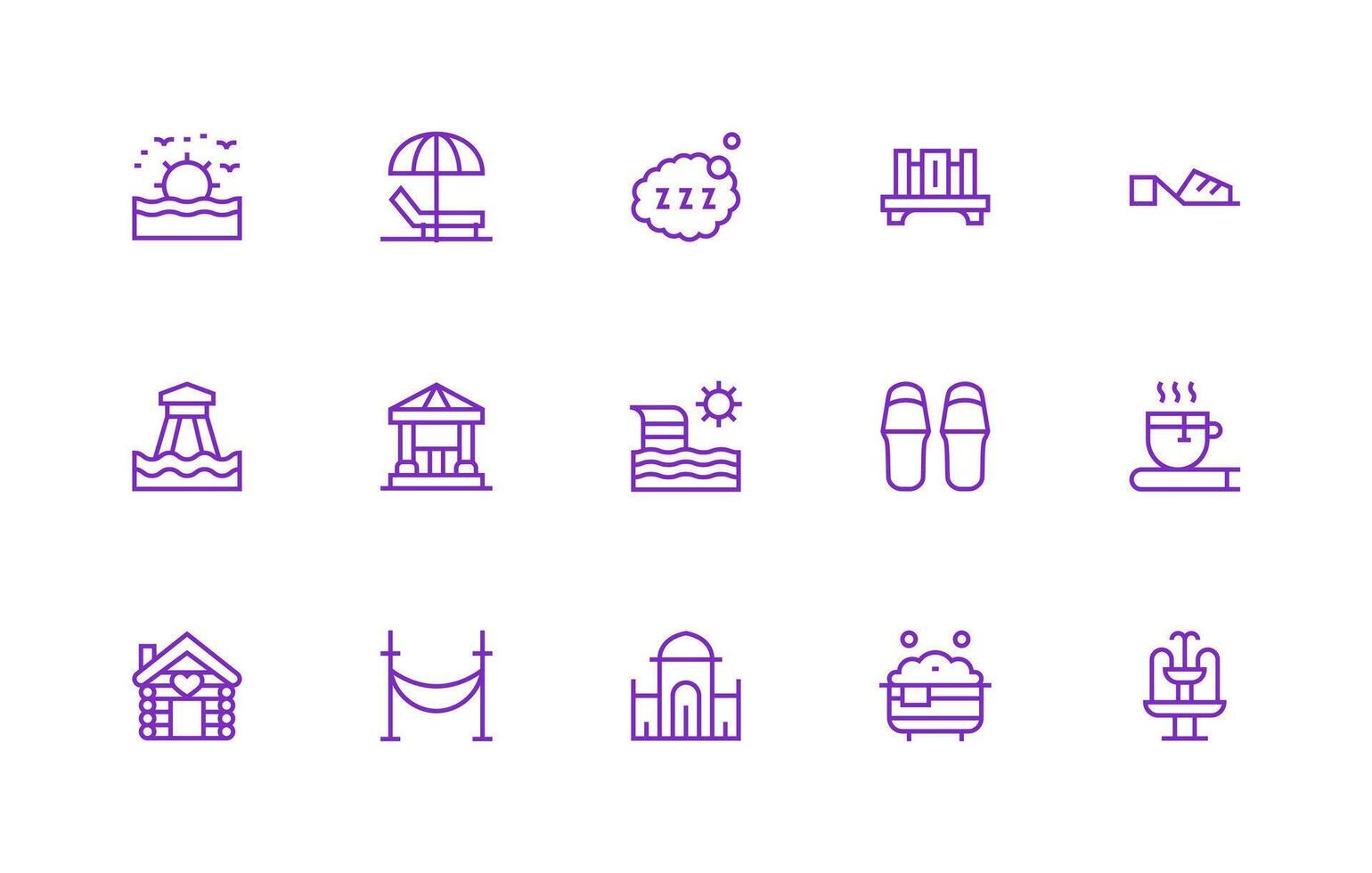 15 Relaxation Icons in Regular Line Aesthetic Simple Icons for Interface and Wireframes vector