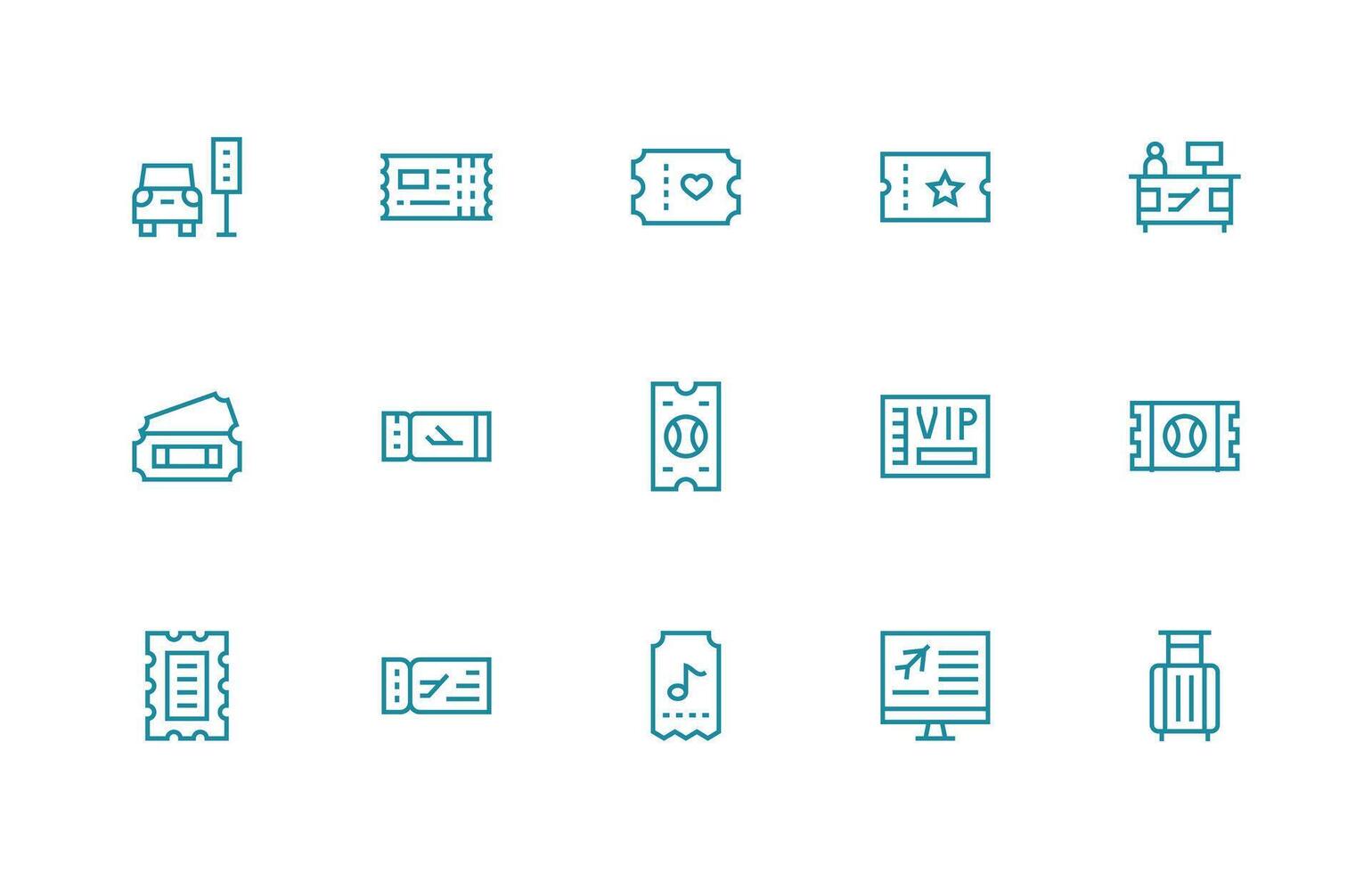 Ticket Design Icons featuring 15 in Regular Line Style Essential Icon Set for Teams vector