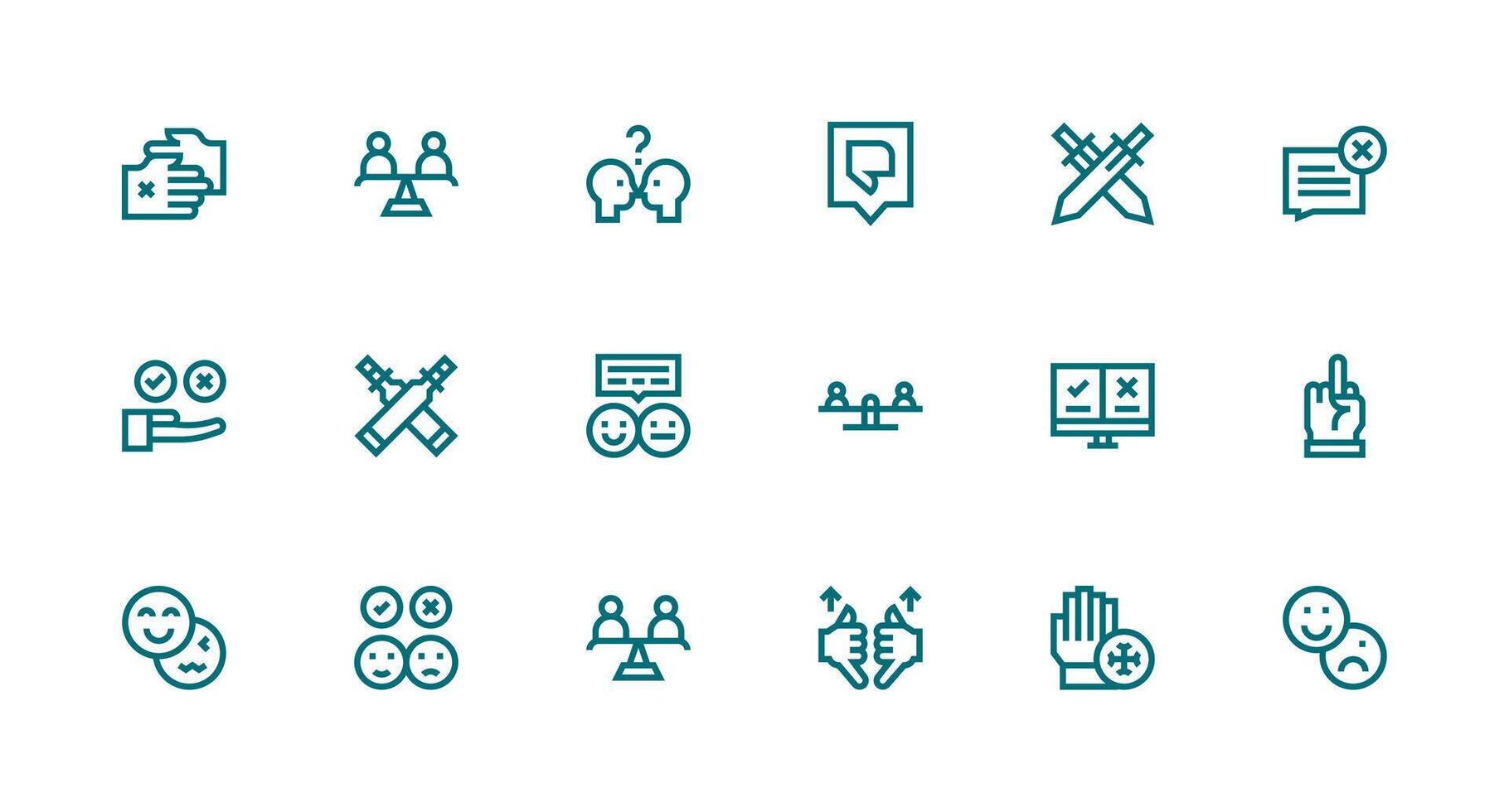 18 Icons for Disagreement in Strong Stroke Line Format UI and UX Focused Icon Collection Free Vector