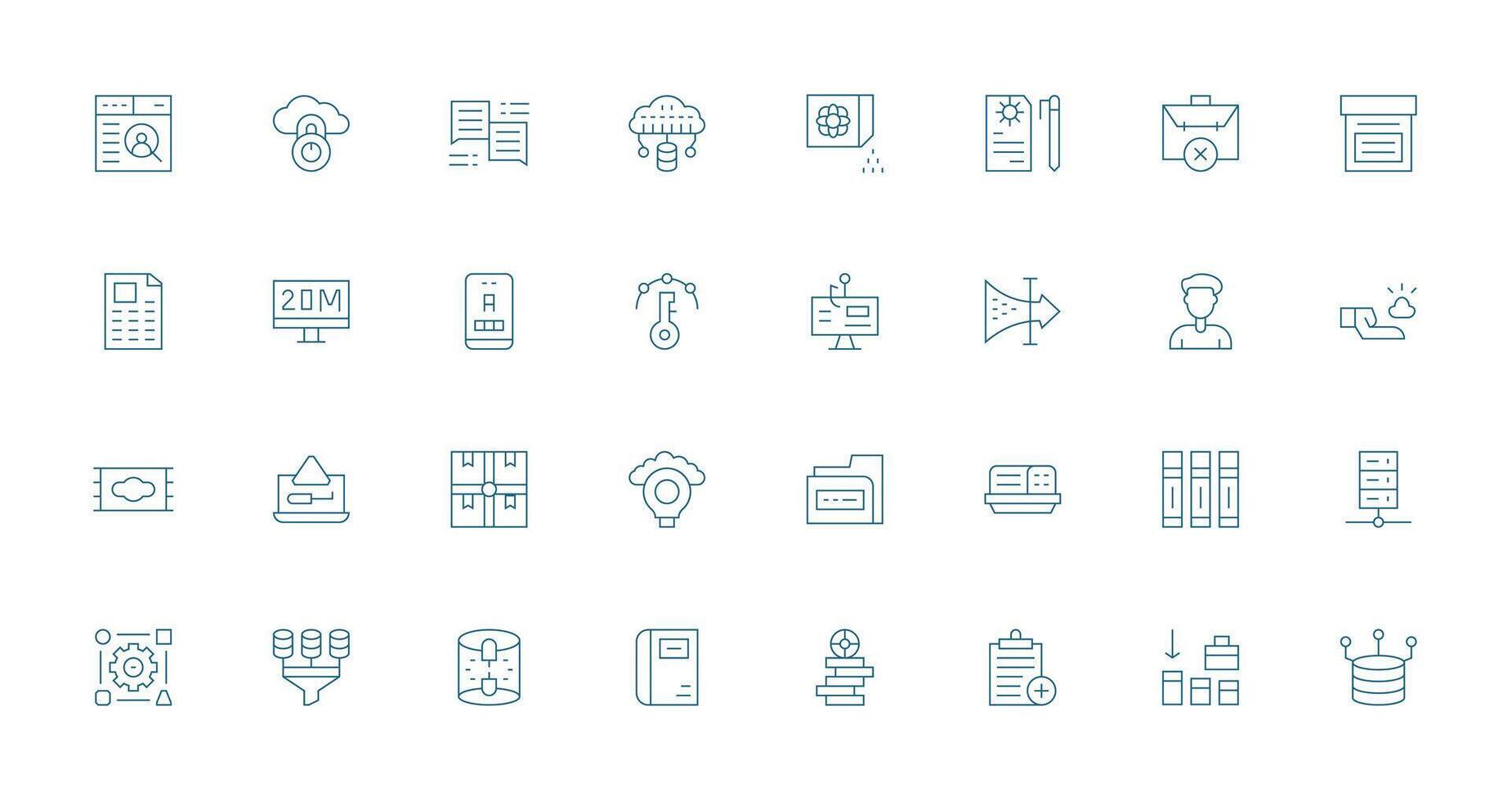 32 Thin Line Style Icons from Data Management Collection Organized Pack for Project Assets Free Vector