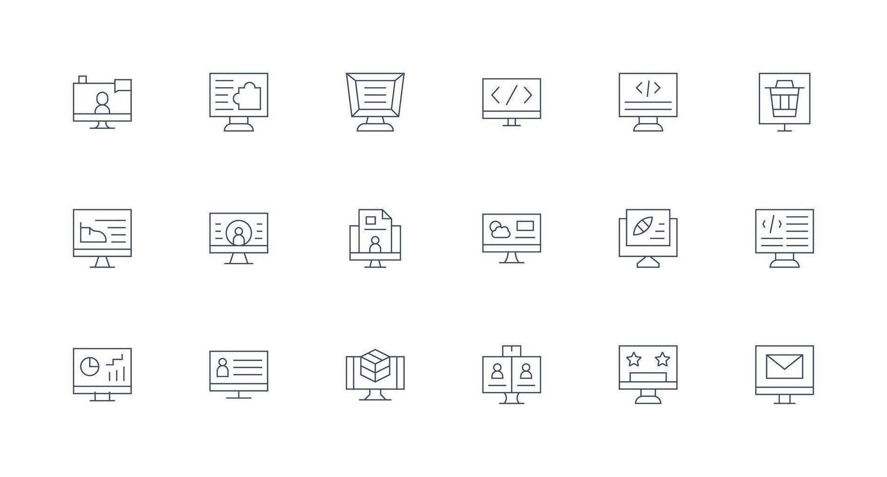 18 Minimal Line Icons for Computer Screen Graphics Detailed Icon Collection for Design Systems Free Vector