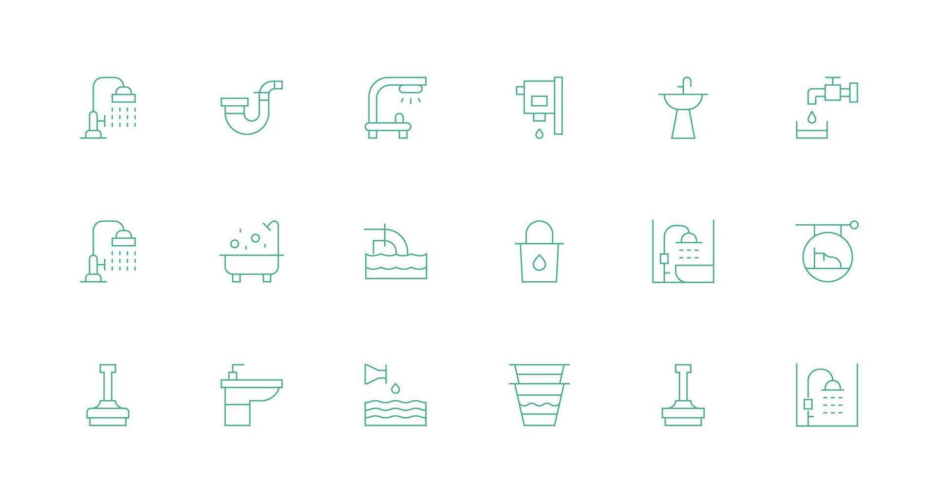 Faucet Design Icons featuring 18 in Minimal Line Style High-Resolution Icons for Any Platform Free Vector