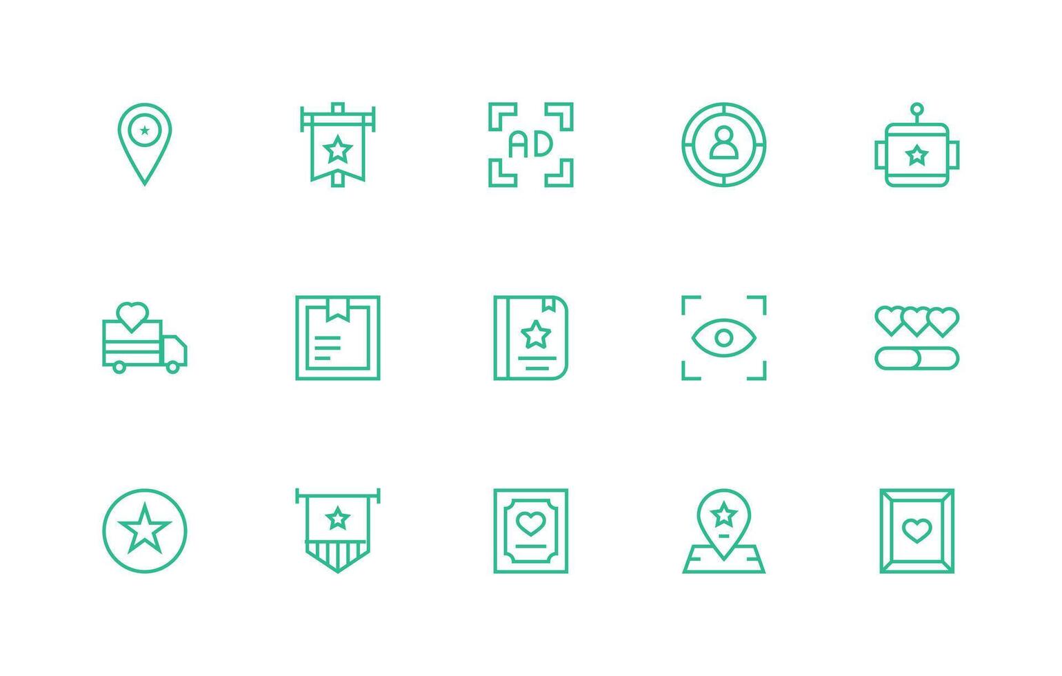 15 Regular Line Icons for Highlighted Graphics Complete Icon Set for Mobile Apps vector