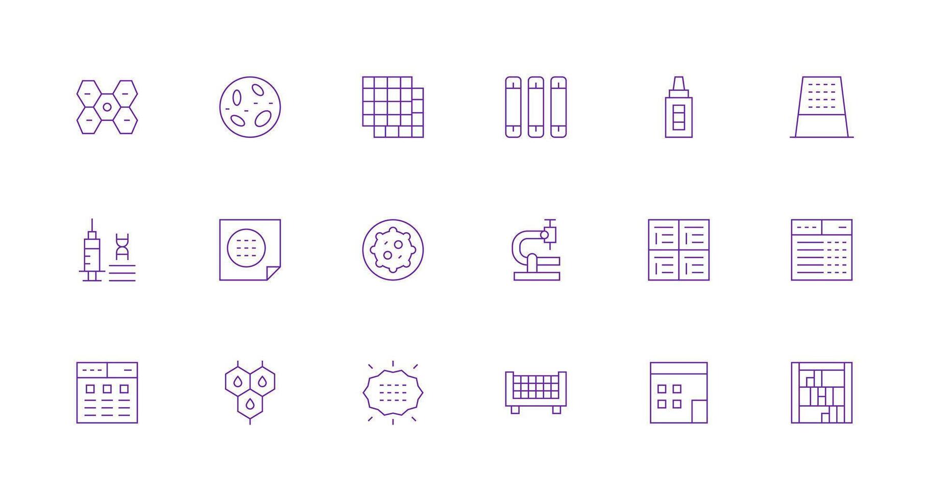 Cells Icon Set with 18 Minimal Line Graphics Complete Icon Bundle for Web Design Free Vector
