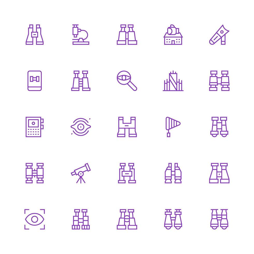 25 Observation Icons in Medium Stroke Outline Aesthetic Quick Access Icons for UI Development vector