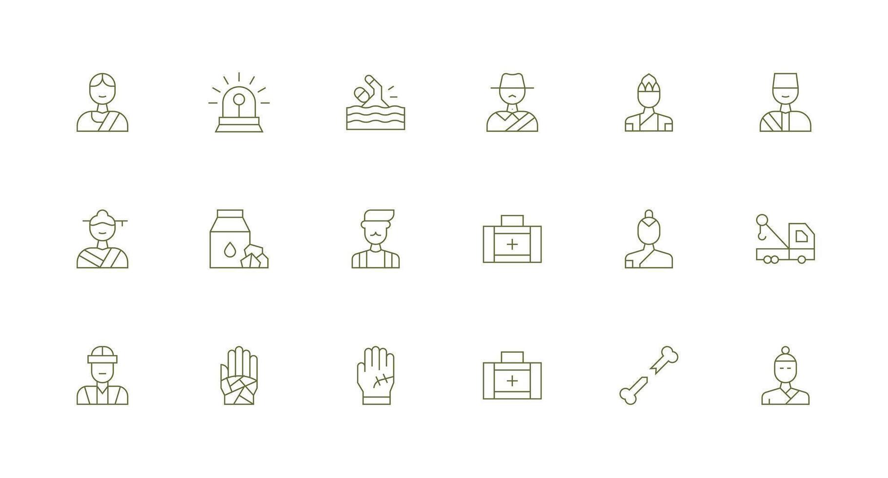 Accident Icon Set with 18 Minimal Line Graphics Web and App Icon Pack Collection Free Vector