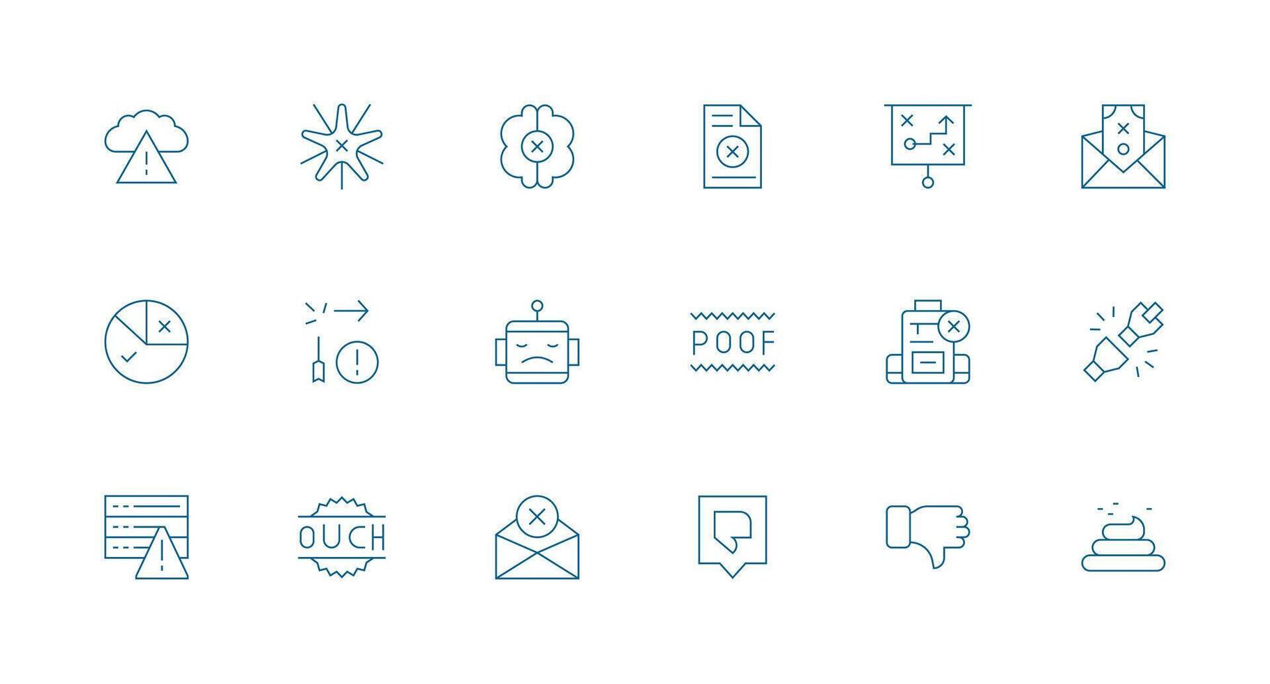Failure Icon Collection with 18 Minimal Line Designs Sharp Icons for Presentations Free Vector