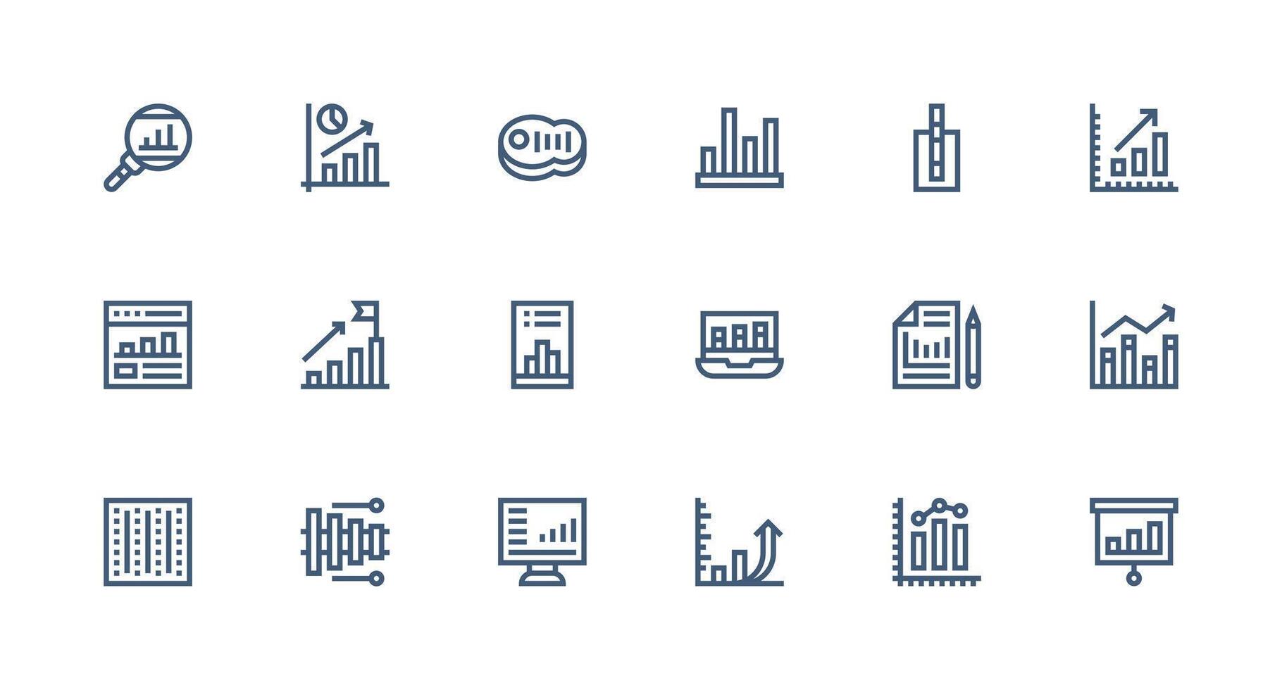 Bar Graph Set with 18 Strong Stroke Line Icons All Device Compatible Icon Set vector