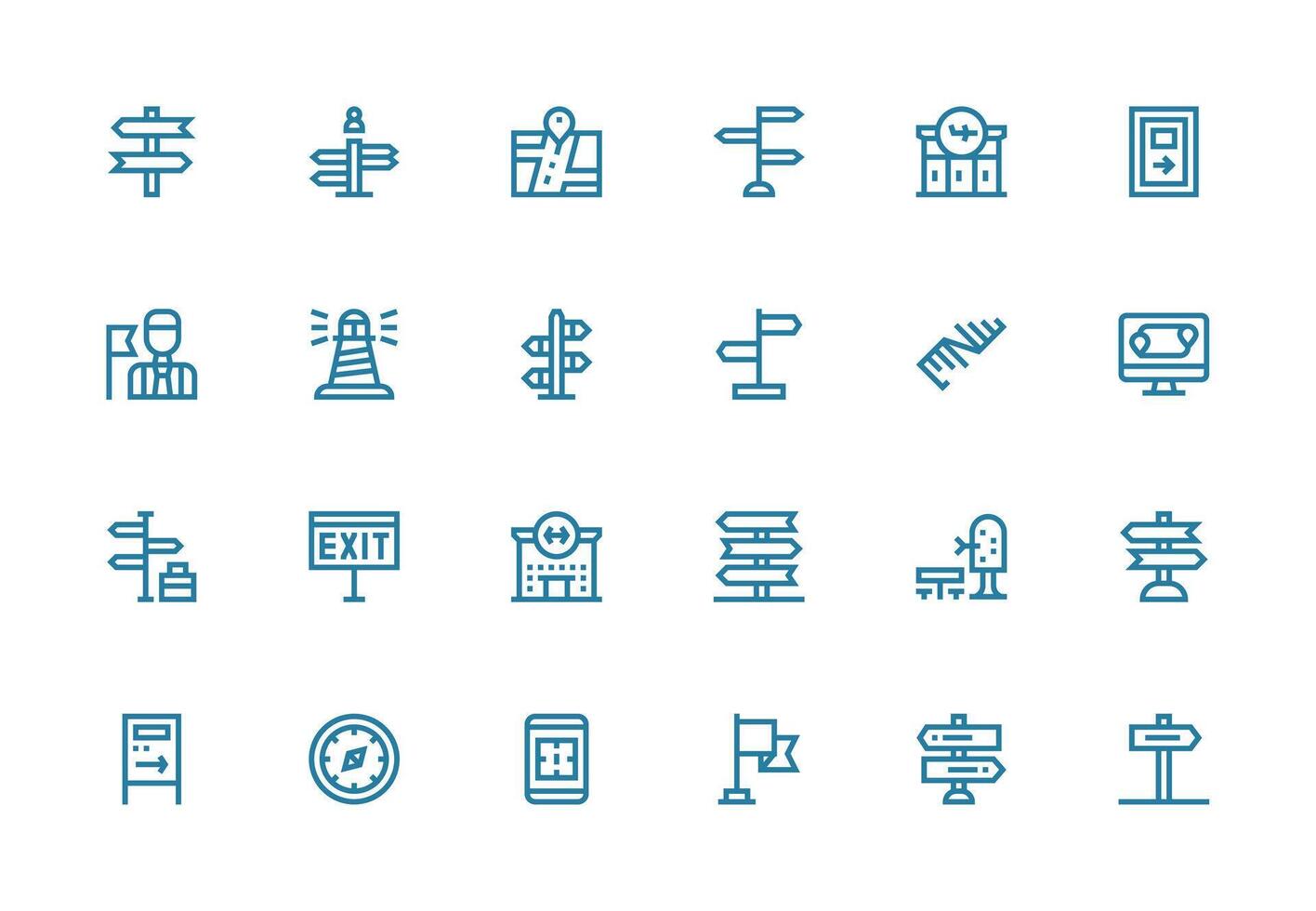 Wayfinding featuring 24 Icons in Thick Line Line Design Balanced Icon Set for Functional Design Free Vector