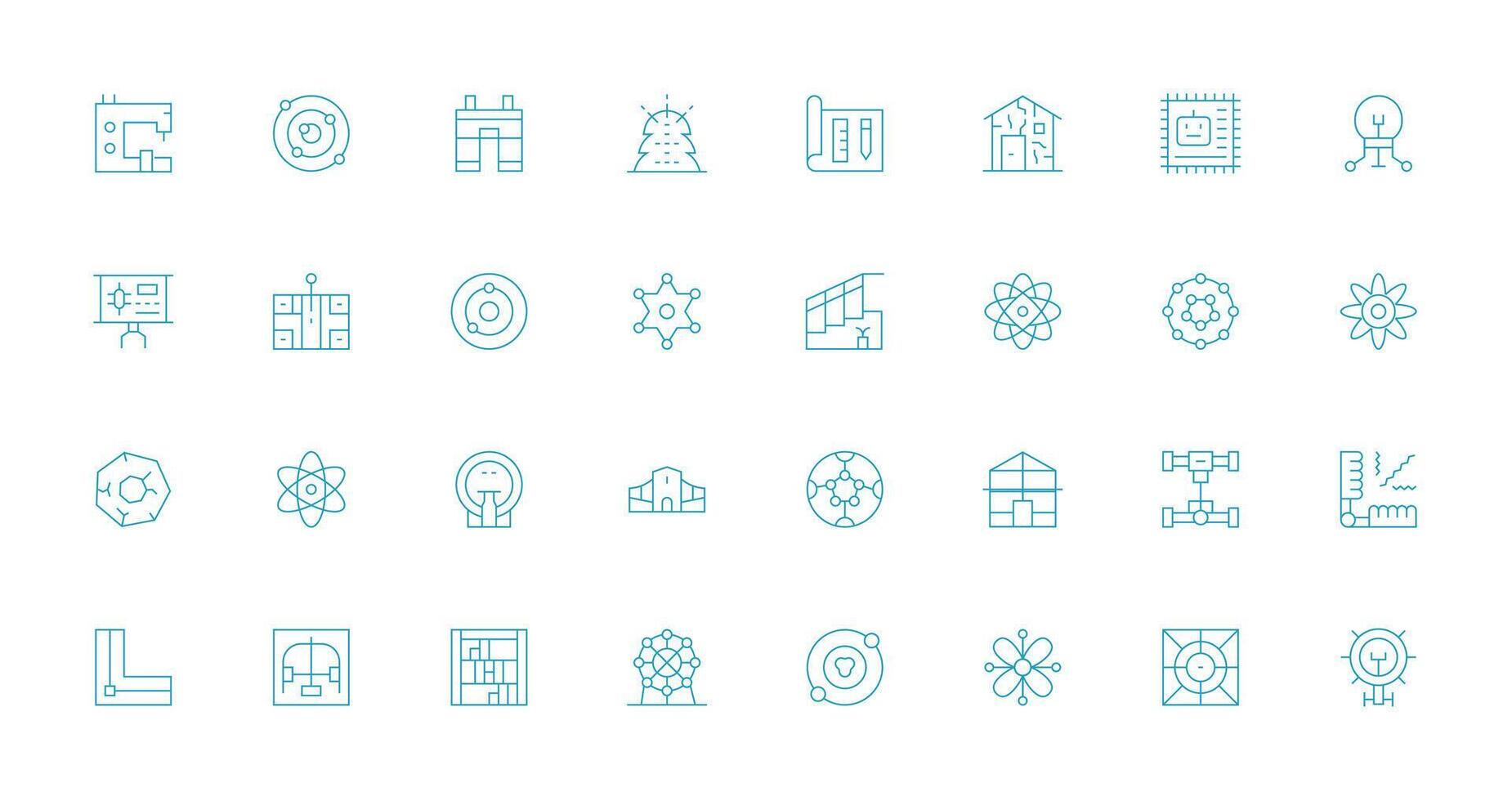 32 Icons for Schematic in Thin Line Format Responsive Icon Set for Flexible Layouts vector