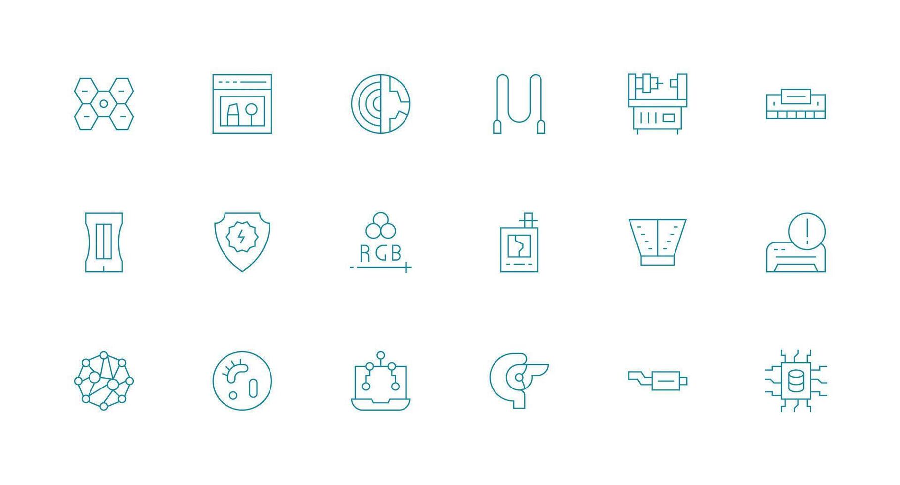 Component Design Icons featuring 18 in Minimal Line Style Interface Icons for Daily Use vector