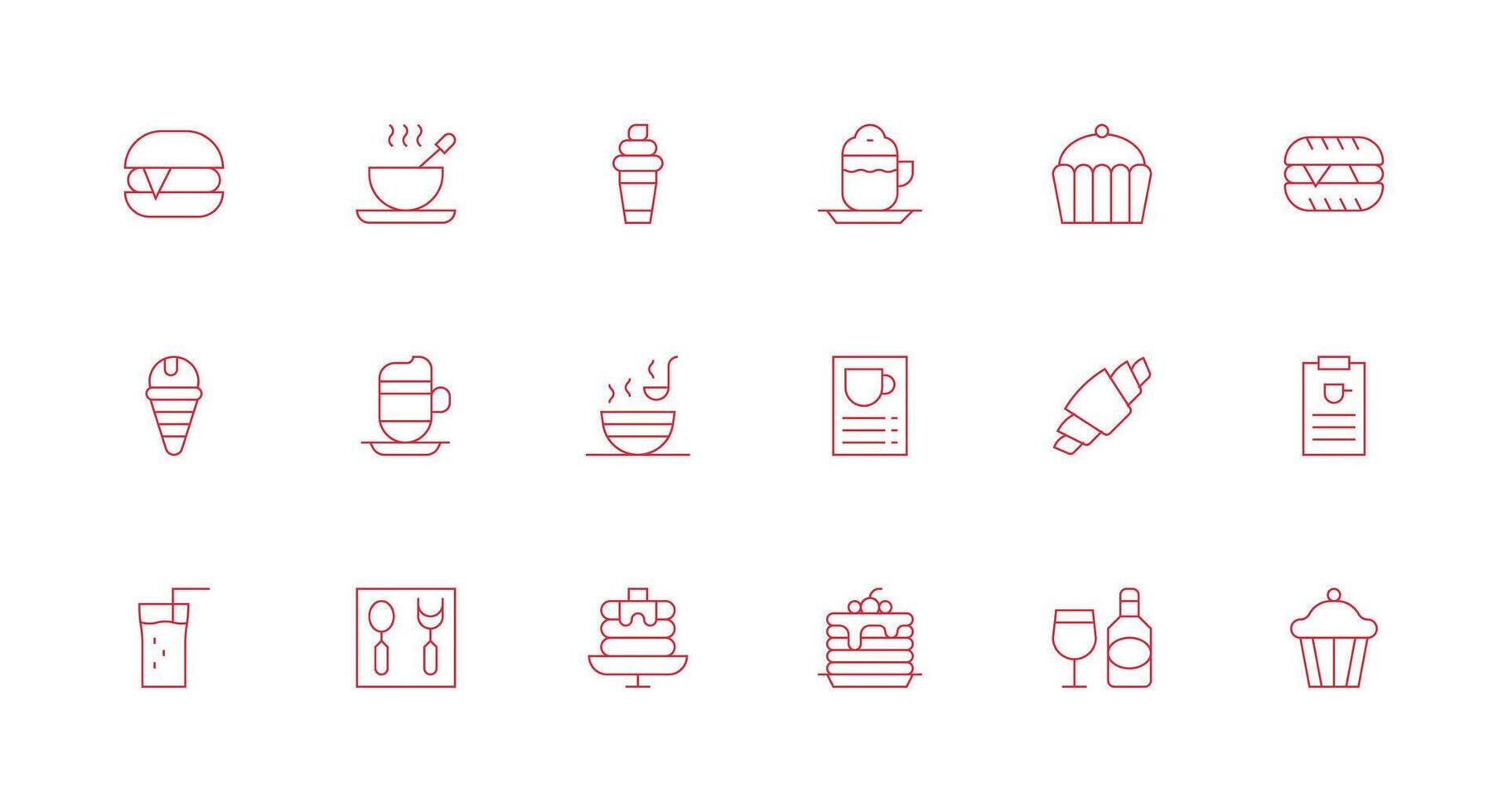 Cafe Menu Icon Collection with 18 Minimal Line Designs Minimal Icon Set for Interface Projects Free Vector