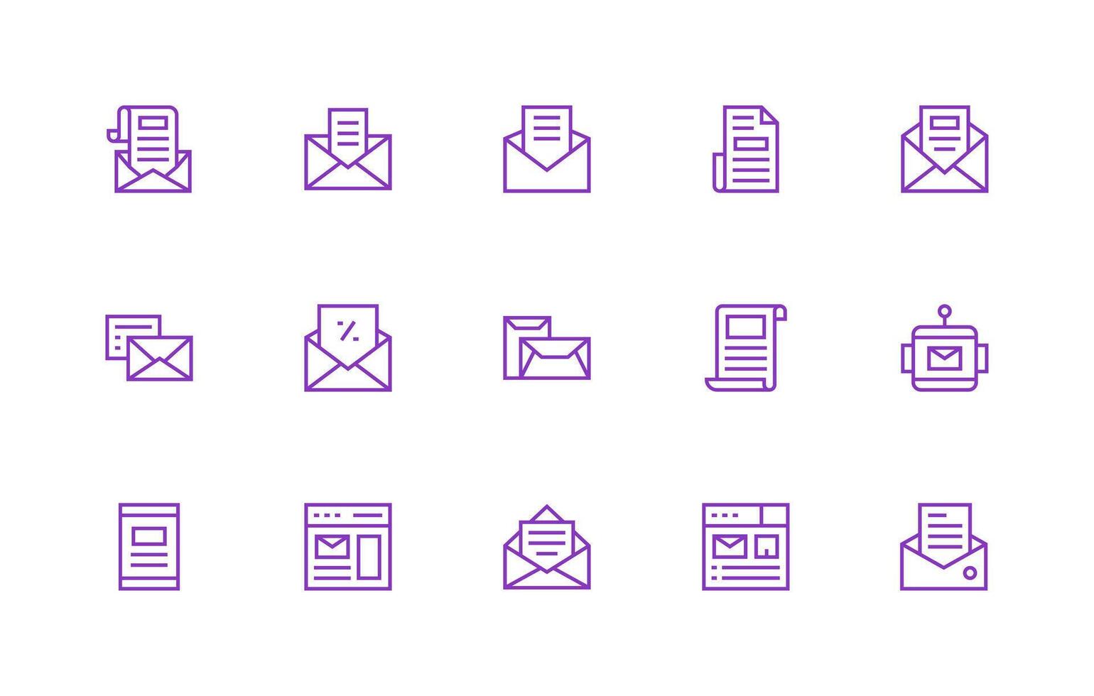 Newsletter Design Icons featuring 15 in Regular Line Style Well-Structured Icons for Creative Use vector