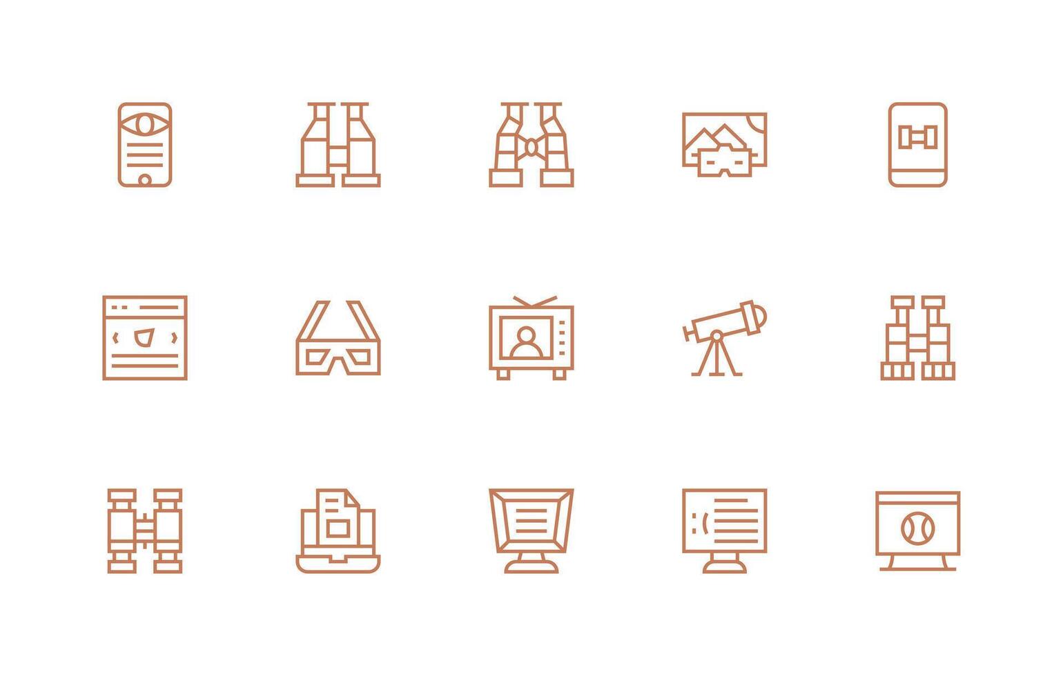 Viewing Icon Set with 15 Regular Line Graphics Interface Icons for Daily Use vector