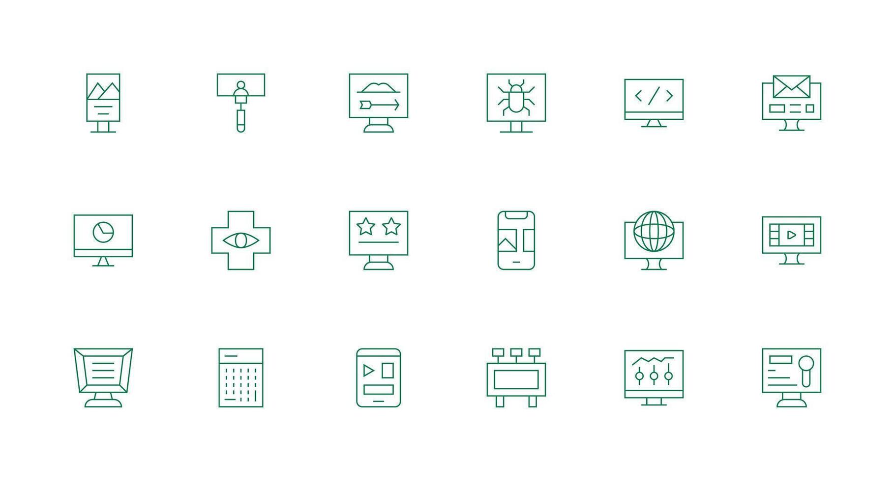 18 Icons for Screen in Minimal Line Format Modern Line and Glyph Icon Series Free Vector