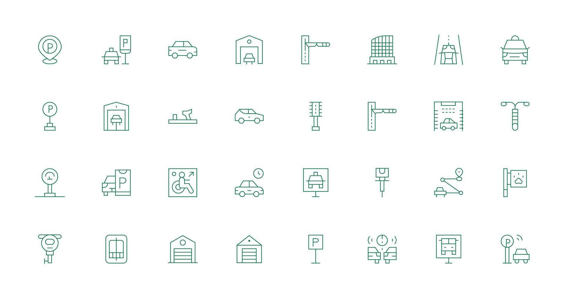 32 Thin Line Vectors for Parking Theme Quick Access Icons for UI Development