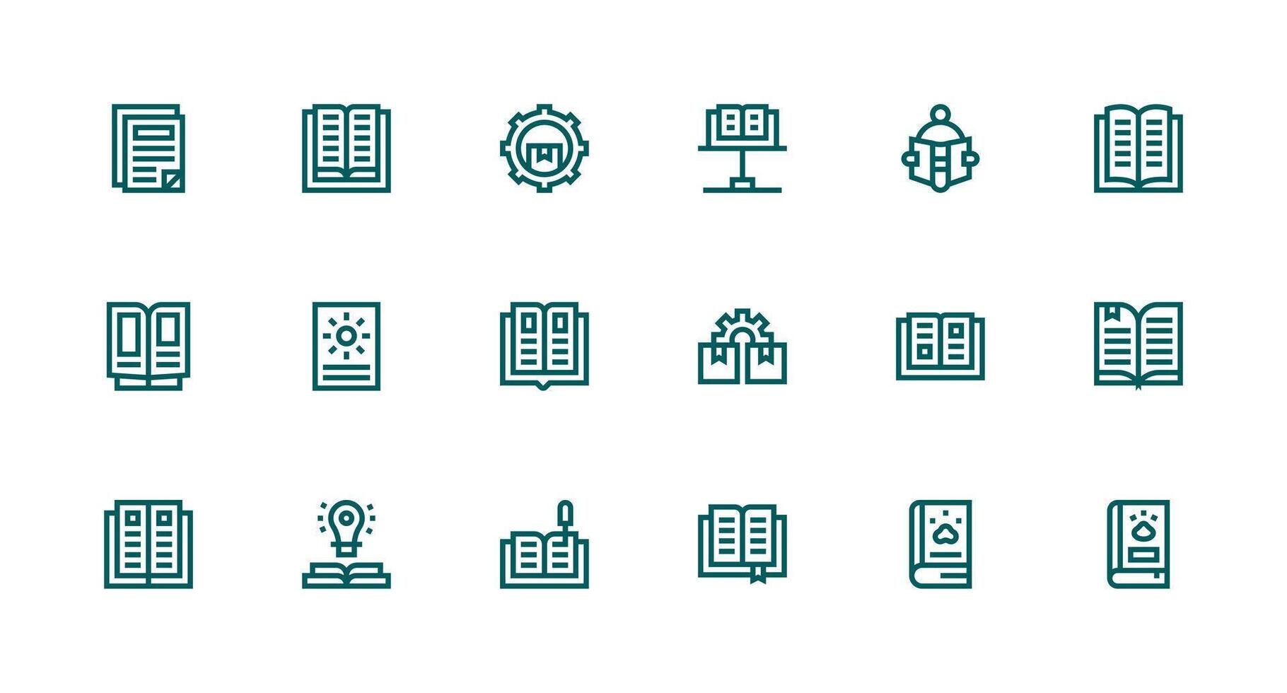 Manuals Icon Set with 18 Strong Stroke Line Graphics Line Icon Collection vector