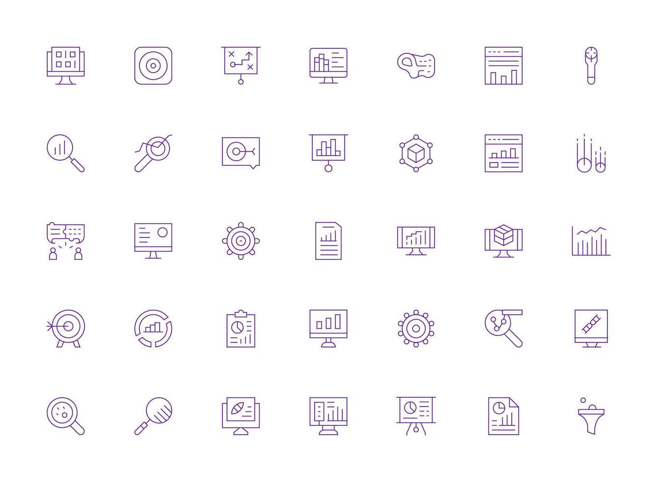 Light Line Style Visualization Icons with 35 Vectors Essential Icons for Rapid UI Building Free Vector
