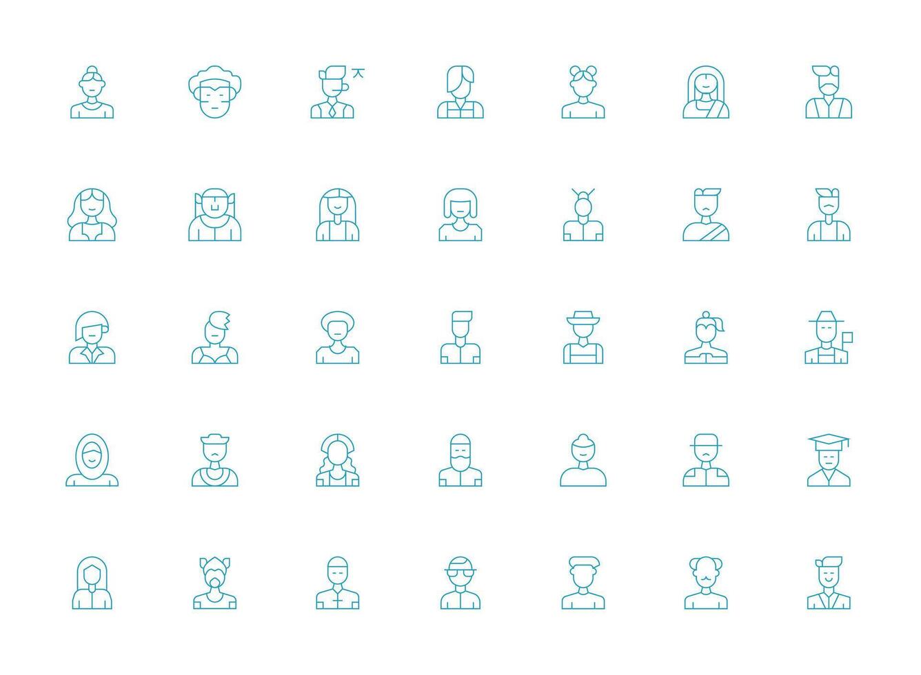 Light Line Style Avatar Icons with 35 Vectors UI Icon Set