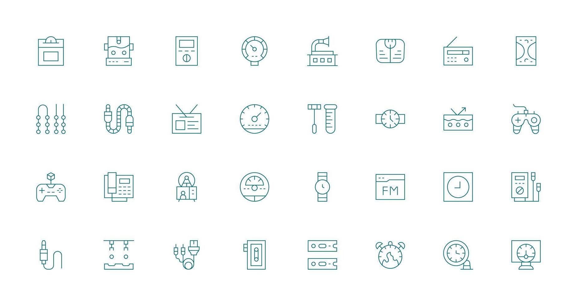 Analog Icon Set with 32 Thin Line Graphics Quick Access Icons for UI Development Free Vector