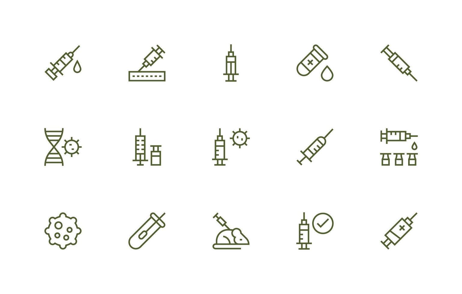 Vaccine Icon Set with 15 Regular Line Graphics Professional Icon Pack for Development Work vector