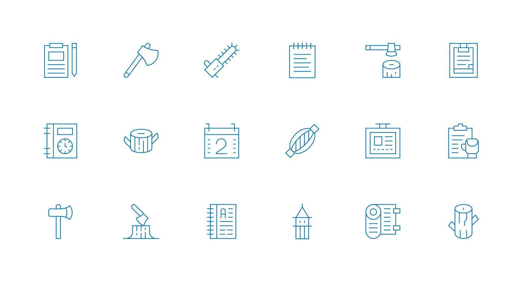 Log Icon Set with 18 Minimal Line Graphics Pixel Perfect Icons for Modern Apps Free Vector