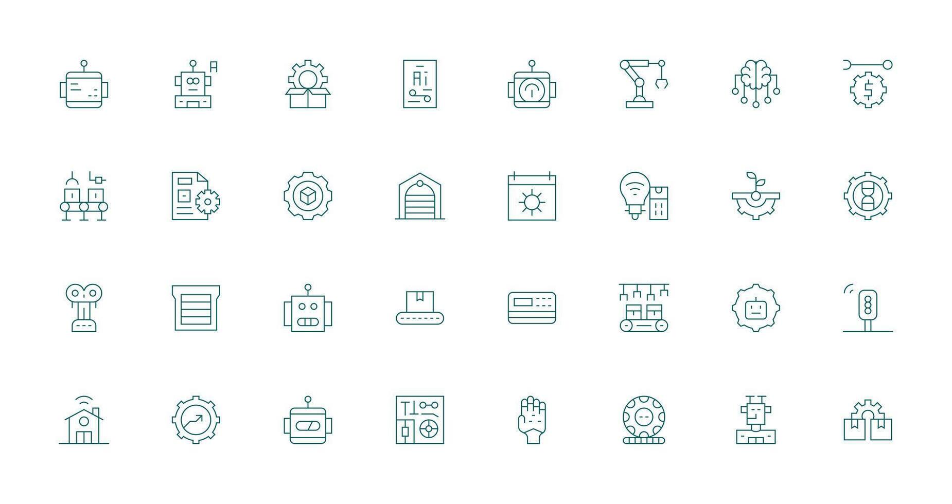 Automation including 32 Thin Line Illustrations Balanced Icon Set for Functional Design vector