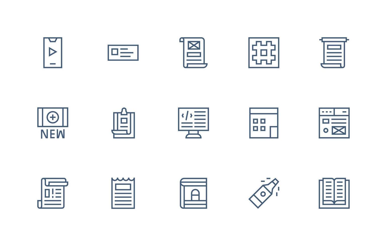 Content Set with 15 Regular Line Icons Balanced Icon Set for Functional Design vector