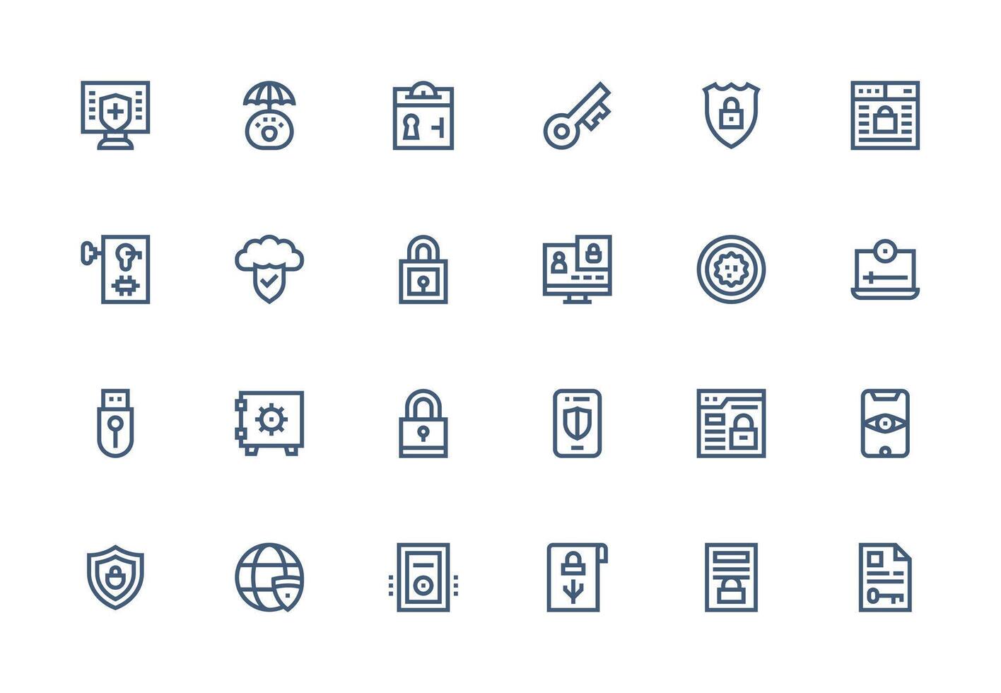 Encryption Icon Set with 24 Thick Line Line Graphics Quick Access Icons for UI Development Free Vector