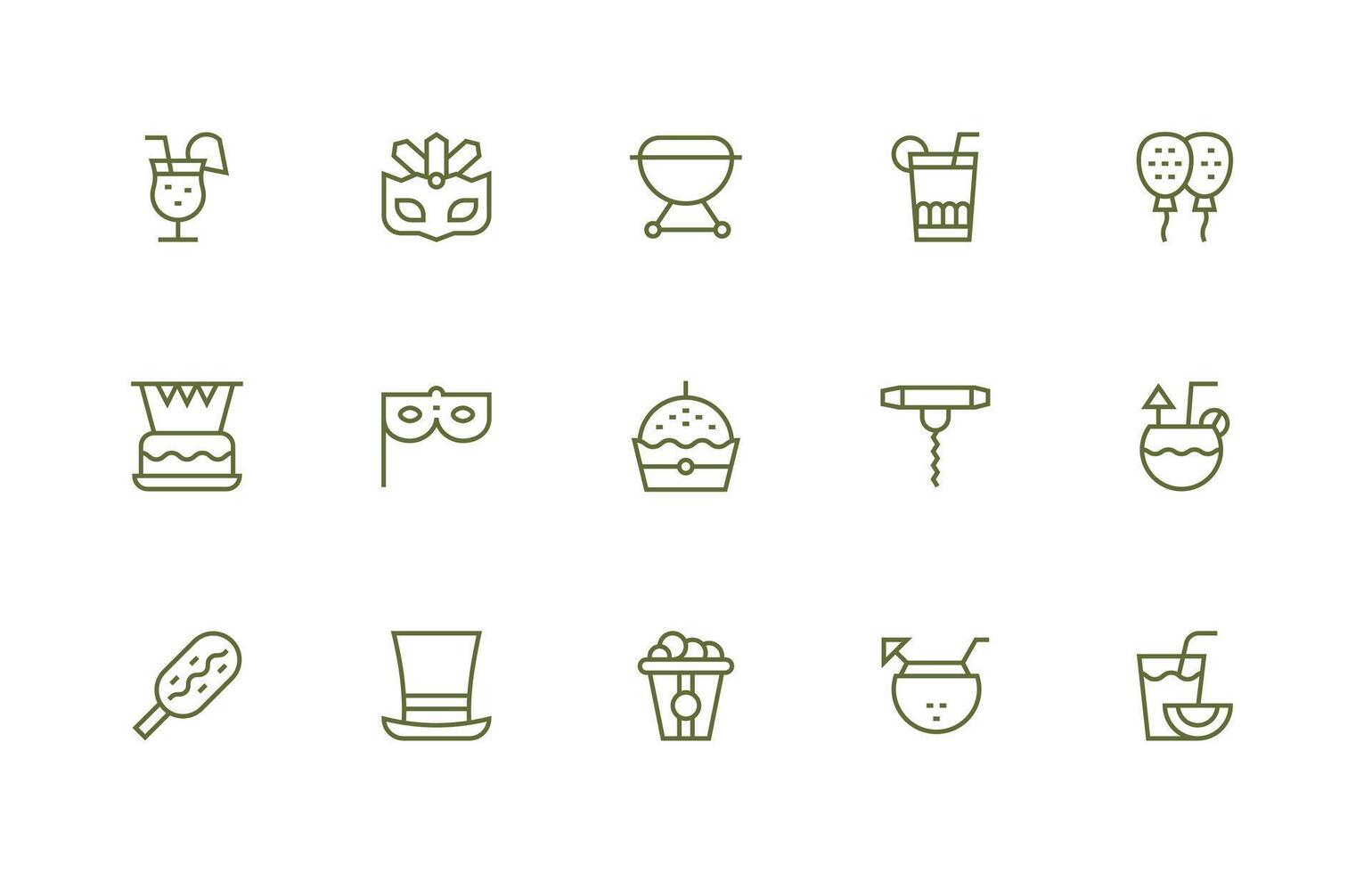Party Icon Set with 15 Regular Line Graphics Scalable Icons for Cross-Platform Interfaces vector