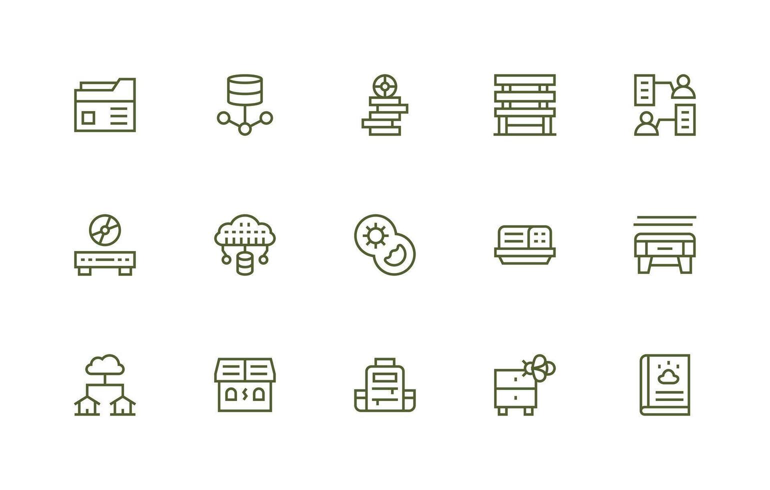 Data Storage Icon Set with 15 Regular Line Graphics Reusable Icon Set Free Vector