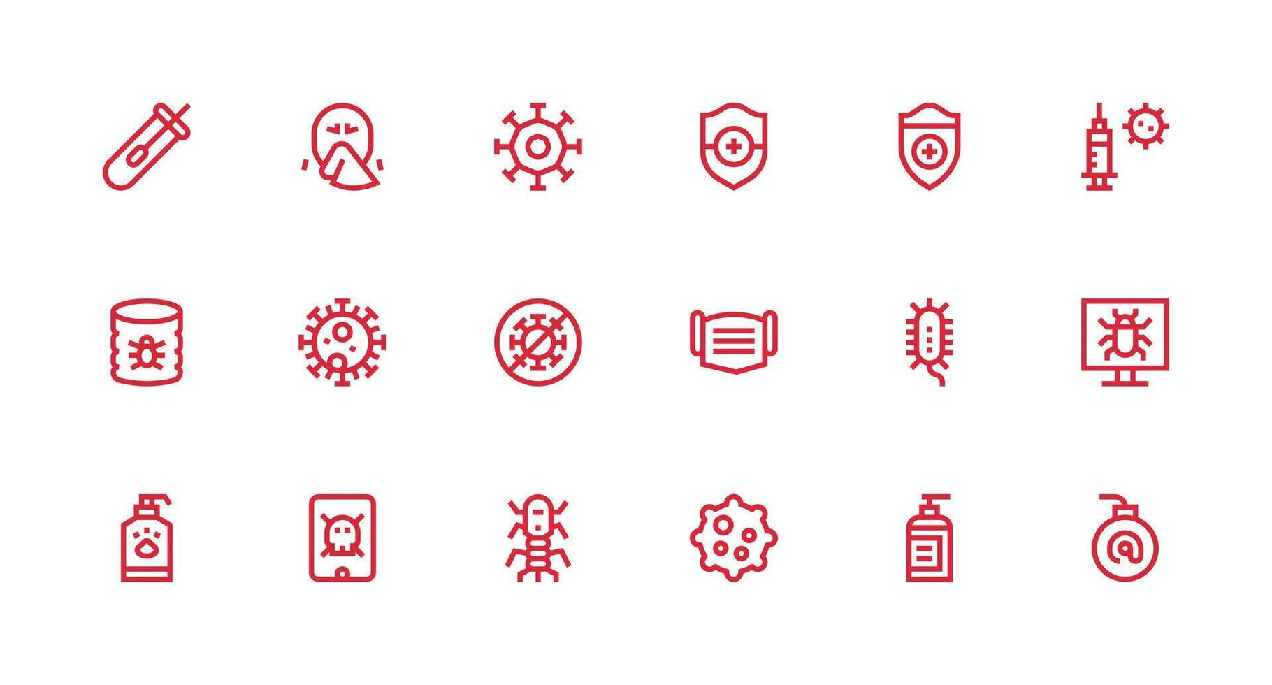 Virus Icon Set with 18 Strong Stroke Line Graphics Multi-Purpose Icon Set Free Vector