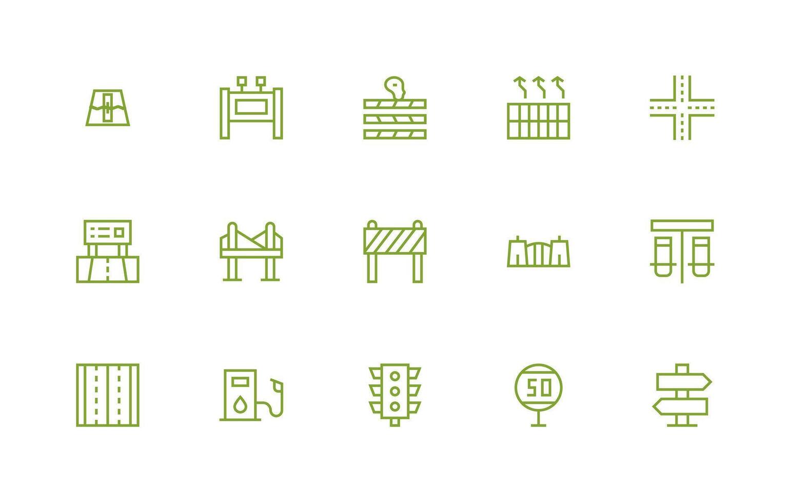 Highway featuring 15 Icons in Regular Line Design All Device Compatible Icon Set vector