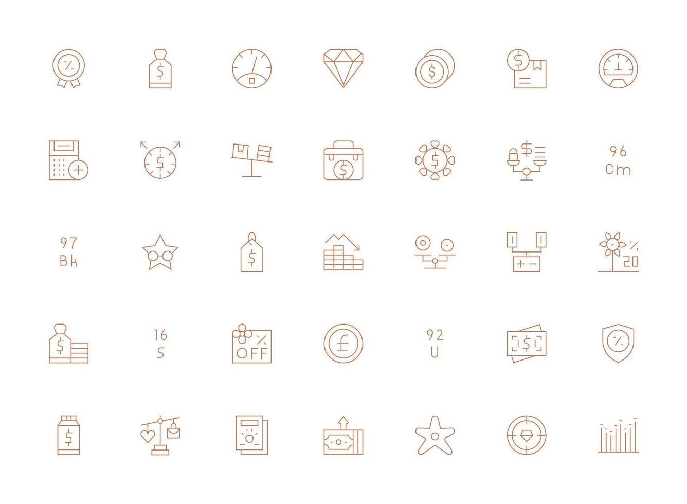 35 Icons for Value in Light Line Format Icon Set for Apps Free Vector