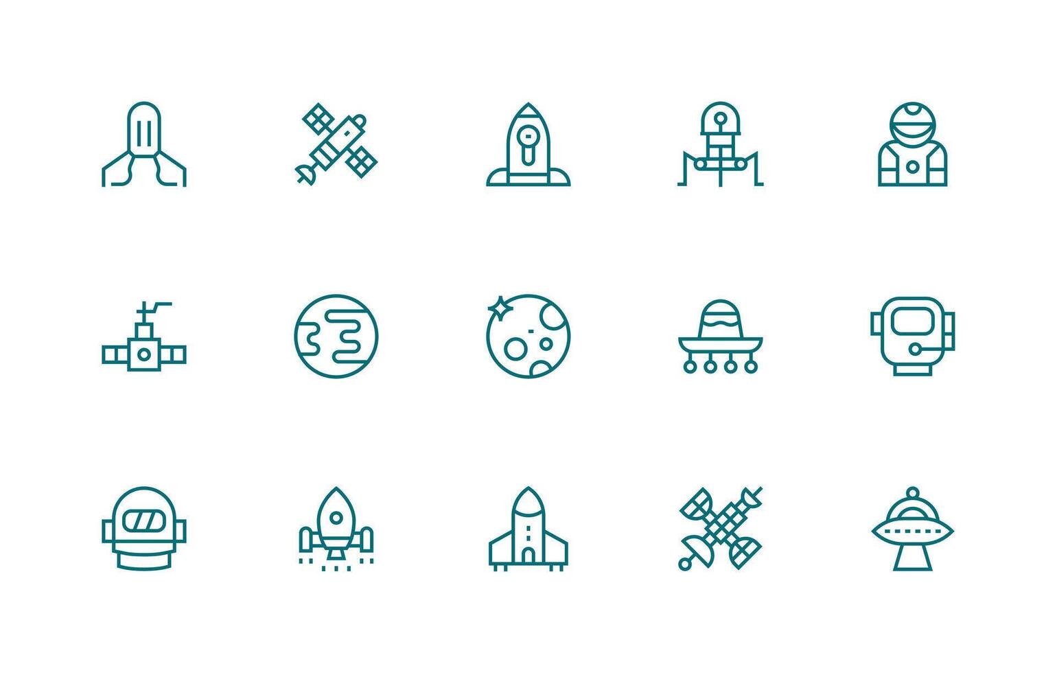 15 Regular Line Icons for Spacecraft Graphics Complete Icon Bundle for Web Design vector