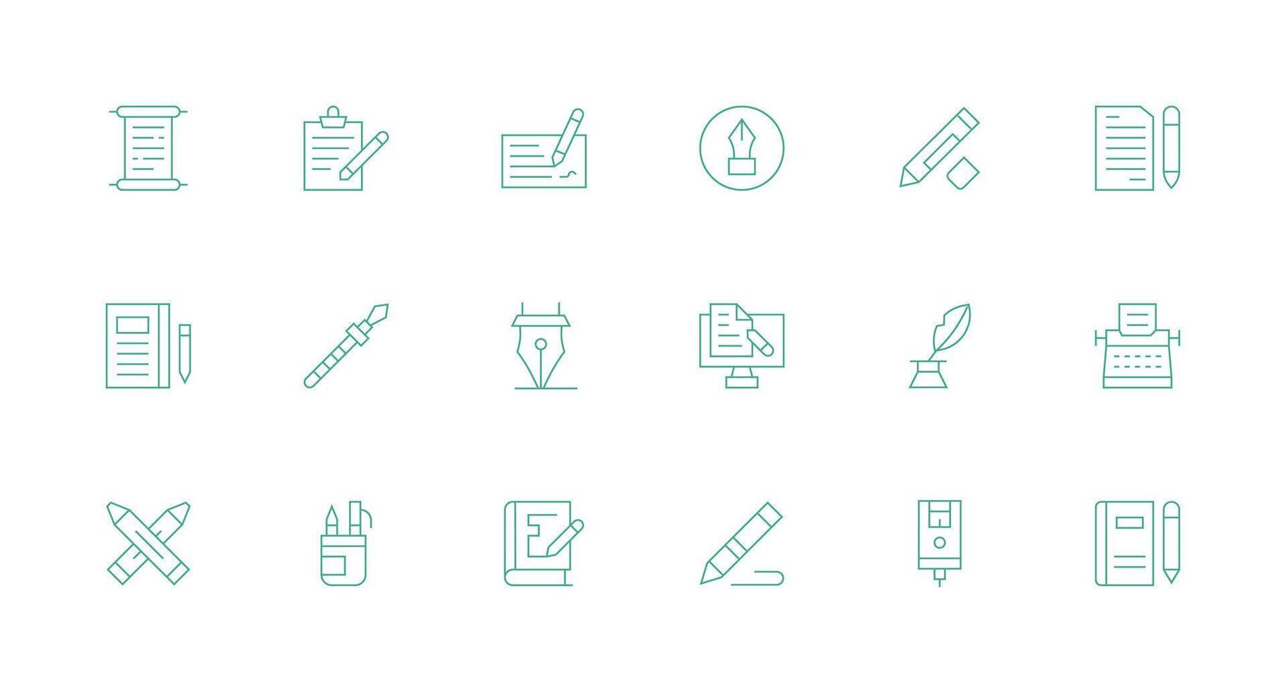 Writing Icon Set with 18 Minimal Line Graphics Organized Pack for Project Assets Free Vector